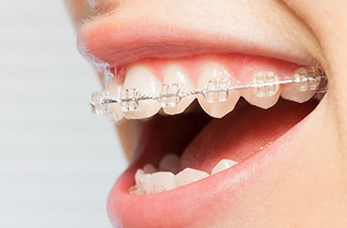 成人矯正と同じタイプのワイヤー矯正です。固定式で取り外しはできません。の表面に貼り付ける装置としてクリアブラケットを使用することで、目立ちにくくなります。